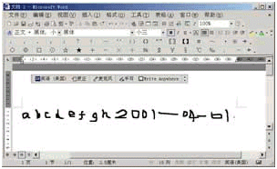 安裝成功后,你會從圖16中看到一個手寫圖標(biāo),接下來我們就可以使用手寫識別功能啦。首先,你必須在屏幕上選定書寫區(qū)域,可以是屏幕上類似于筆記本橫格紙的輸入板,也可以在屏幕上任意的位置書寫。我們可通過使用手寫輸入設(shè)備或移動鼠標(biāo)墊上的鼠標(biāo)來形成文字,從而完成書寫,手寫文字將被自動識別,并輸入到程序的插入點處。就像通常在紙張表面上一樣,你可以使用草書、印刷體或二者兼而有之地進行書寫,書寫時不必每寫完一個字母后作停頓,可輸入整個單詞并在單詞之間留出空格。