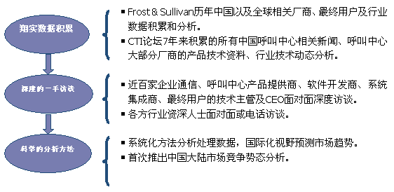 Frost & Sullivan 和 CTI論壇(www.zjduomi.com)共同組成的調(diào)研小組,在查閱了大量資料的基礎(chǔ)之上,以企業(yè)通信及呼叫中心的設(shè)備應(yīng)用、投資計(jì)劃以及相關(guān)廠商的市場(chǎng)表現(xiàn)為出發(fā)點(diǎn),通過(guò)對(duì)企業(yè)通信及呼叫中心重要應(yīng)用企業(yè)、在市場(chǎng)占主導(dǎo)地位的二十多家設(shè)備廠商、二十多家軟件開(kāi)發(fā)商、十幾家系統(tǒng)集成商、數(shù)家外包運(yùn)營(yíng)商的深度訪談,參閱內(nèi)部相關(guān)報(bào)告及數(shù)據(jù)庫(kù),對(duì)數(shù)據(jù)的來(lái)源和數(shù)據(jù)的準(zhǔn)確性進(jìn)行了詳細(xì)核對(duì)與論證;憑借參與調(diào)研人員的多年從業(yè)經(jīng)