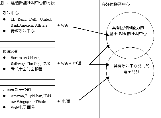 所有的公司都迫切希望找到一種途徑,使自己擁有“具有因特網(wǎng)能力的、web集成的呼叫中心”或“具有呼叫中心能力的電子商務(wù)網(wǎng)站”。圖1所示為實施方法的一個實例。但是,不管你如何稱呼它,如何達(dá)到目標(biāo),你都會面臨處理多媒體聯(lián)系的挑戰(zhàn)。多媒體聯(lián)系中心包括通過電話簽定合同和處理來自web的合同,可能是通過電子郵件,文本交談,電話呼叫,或通過web的語音呼叫。并且,大多數(shù)時候是由同一組人處理多種媒體服務(wù)。